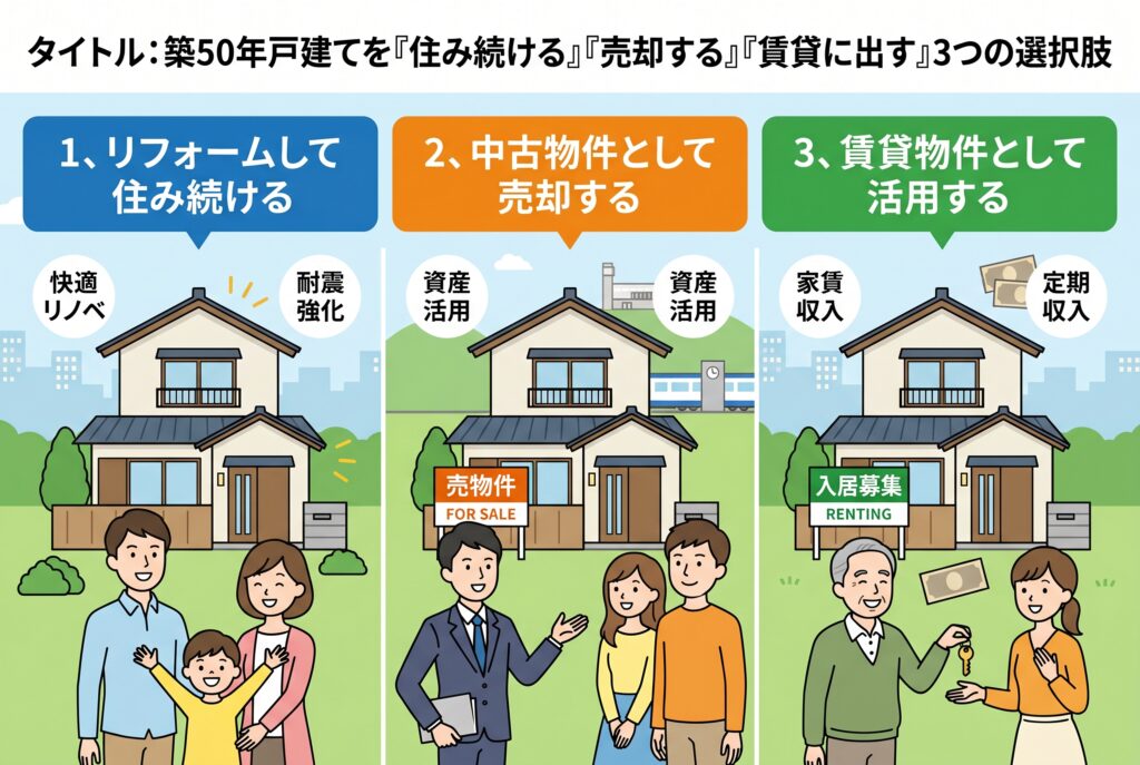 築50年戸建てを「住み続ける」「売却する」「賃貸に出す」3つの選択肢
